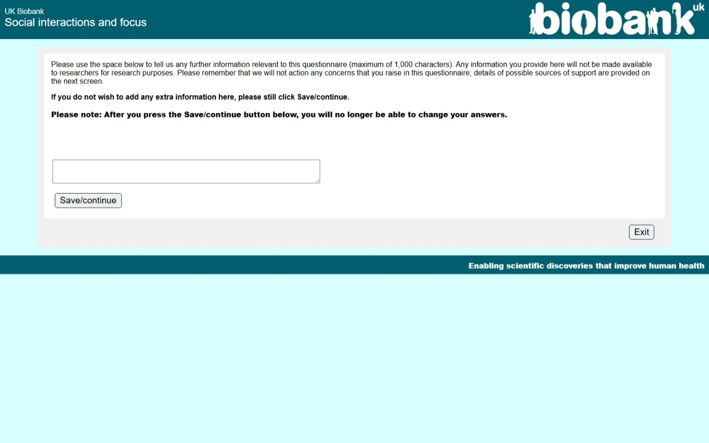 Online Social Interactions and Focus questionnaire screenshot of end of questionnaire, showing appearance as seen by participants circa 2023